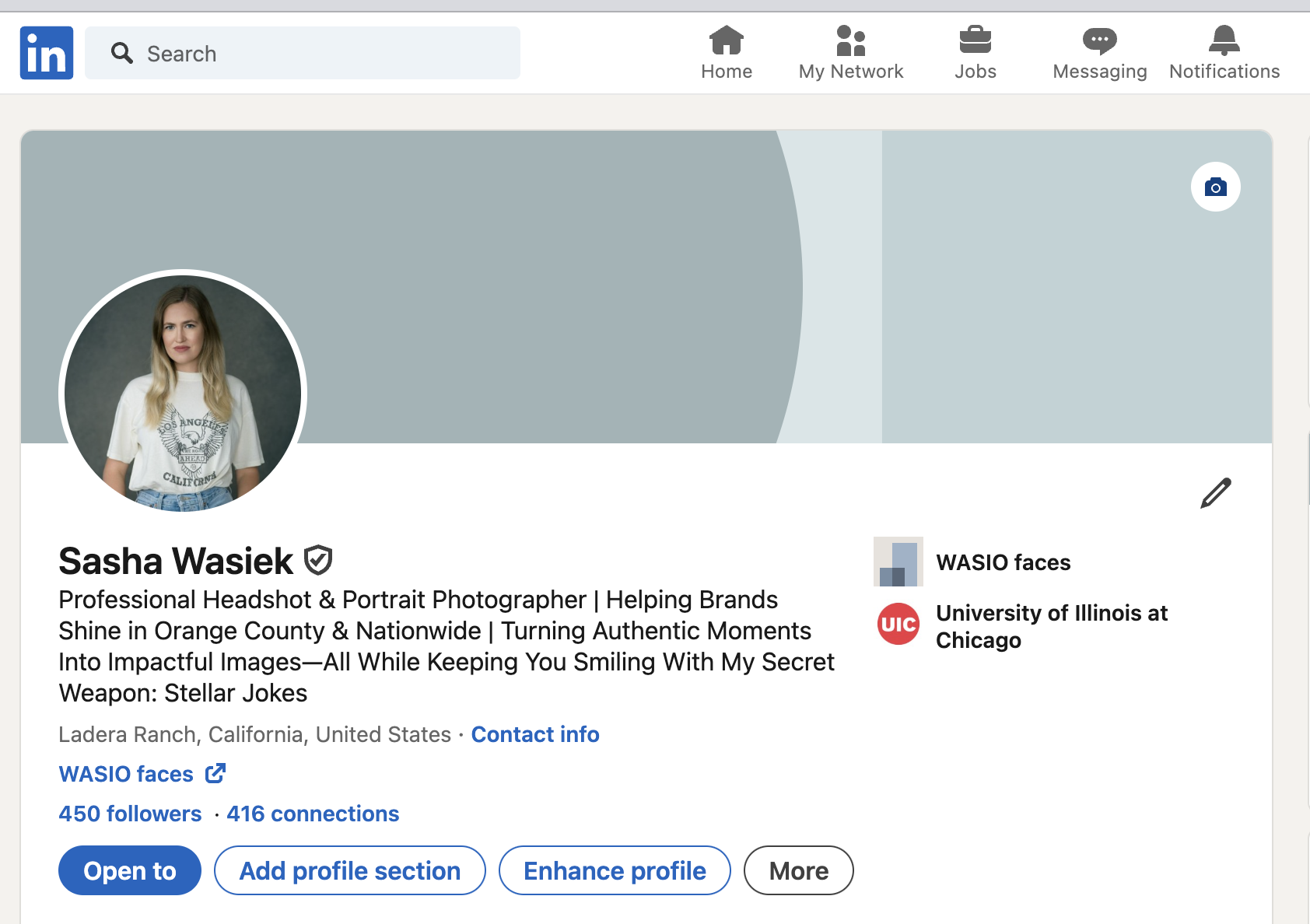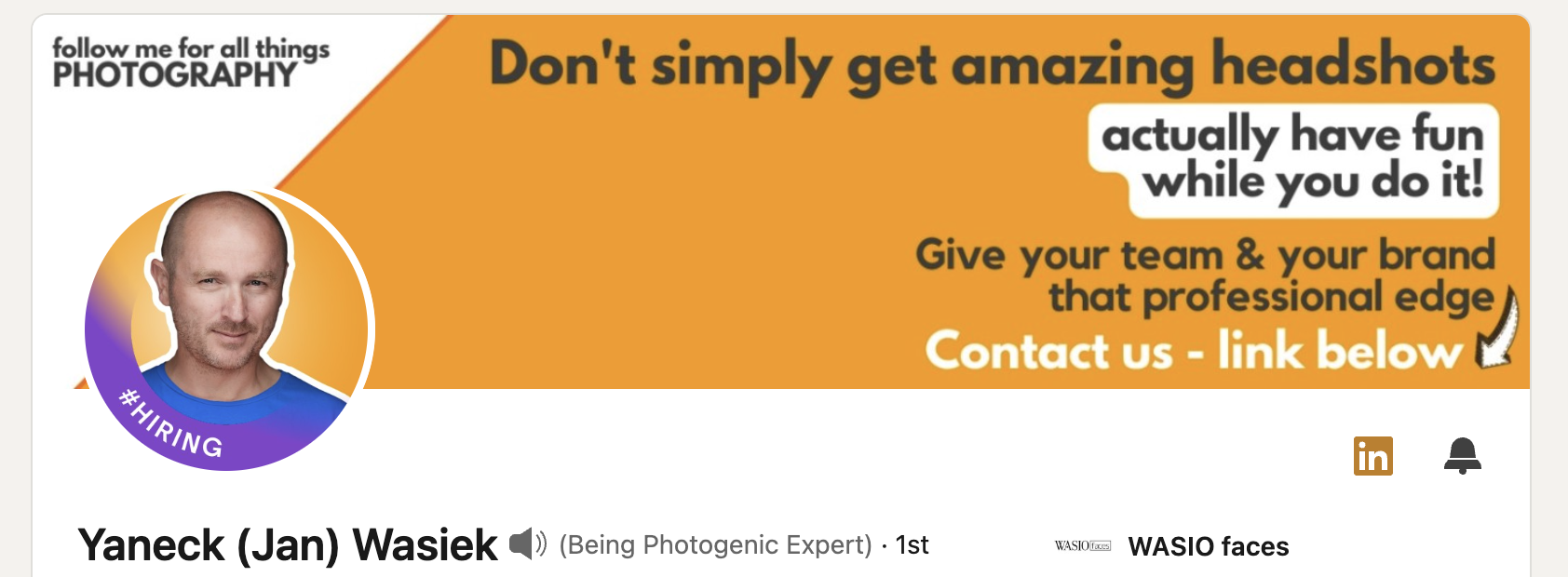My current headline is: Professional Headshot & Portrait Photographer | Helping Brands Shine in Orange County & Nationwide | Turning Authentic Moments Into Impactful Images—All While Keeping You Smiling With My Secret Weapon: Stellar Jokes